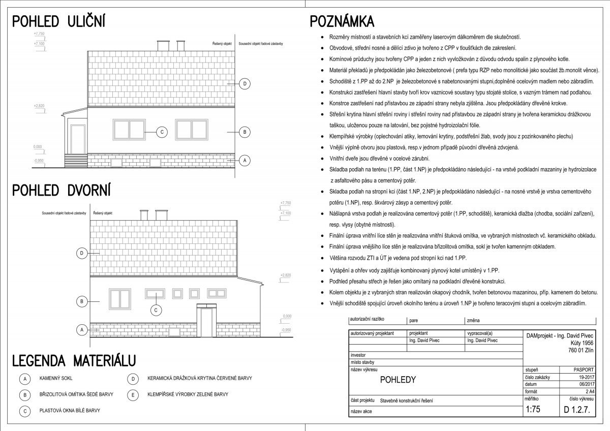 Investorem byla mladá paní, která se rozhodla zajistit dokumentaci stávajícího stavu rodinného domu, kde aktuálně bydlí její rodiče. Pasport nemovitosti bude podkladem pro zamýšlené zateplení objektu, rekonstrukci doposud nevyužívaného podkroví a drobné problémy s technickým stavem objektu.